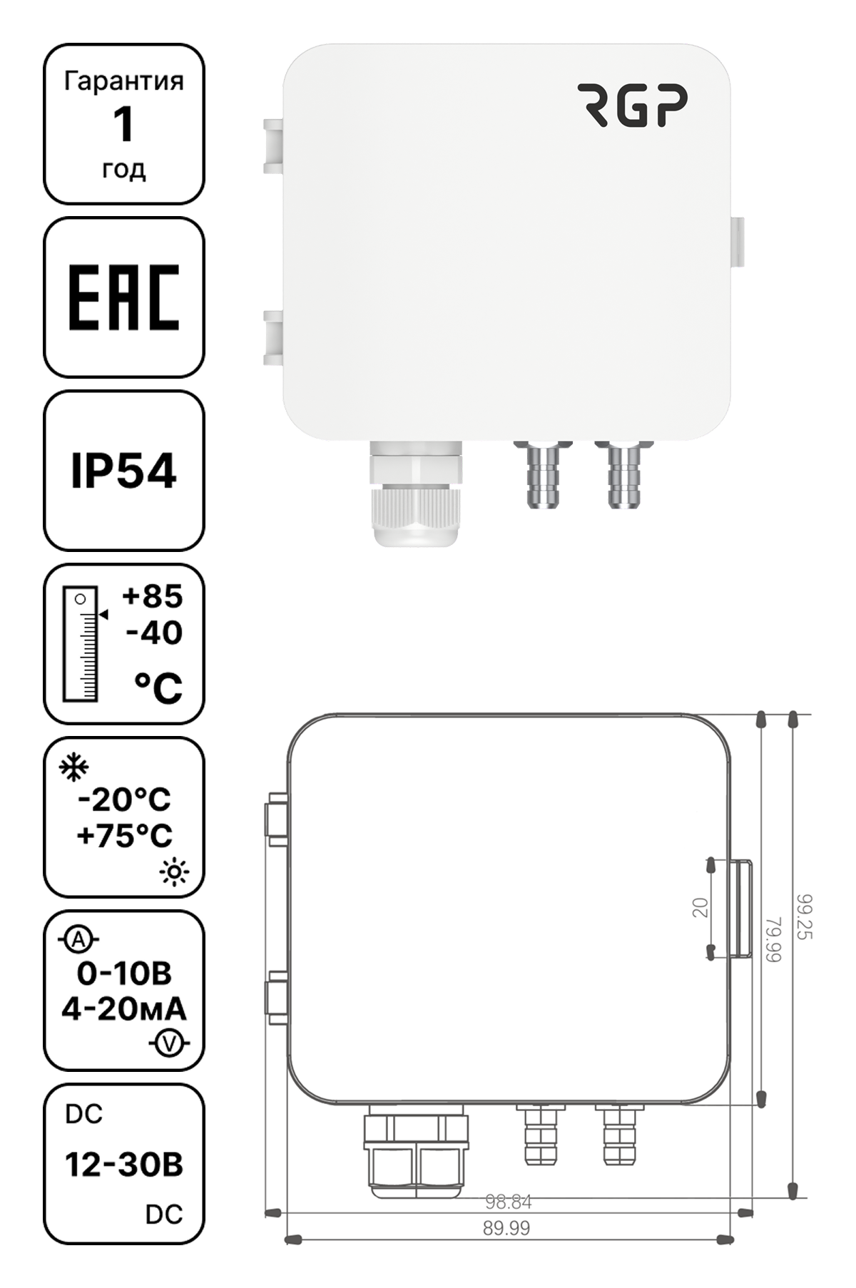 ✅ Универсальный выход: 0–10 В и 4–20 мА;