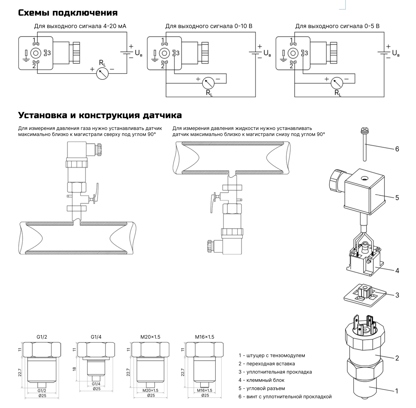 при измерении давления жидкости датчик устанавливается вертикально, штуцером вниз, чтобы избежать скопления пузырьков воздуха;